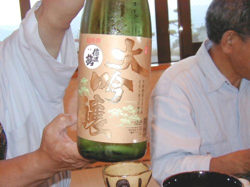 | 平沢機工の岩切社長から差し入れの大吟醸、なんと2本も。地元でも手にはいりにくいんだとか。おいしくて2本とも全部飲んでしまった。 |