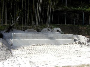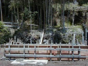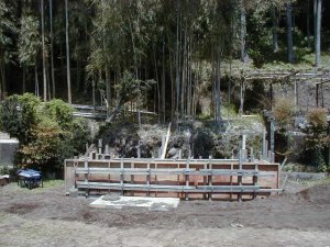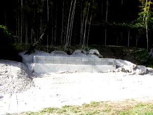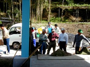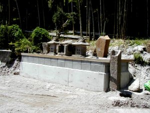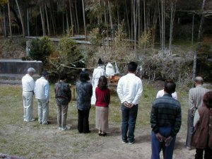 平成16年4月25日午前9時 より馬頭観音を建立する各班の 方が馬頭観音の碑を搬入されま した、後は工事が終わった場所 に建立するだけになりました |