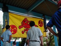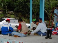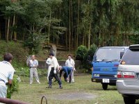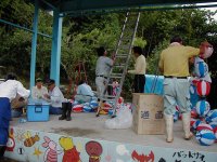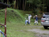 | 斉清掃の後、六月燈イベント会場の草刈、デント張り、舞台の飾り付けを |