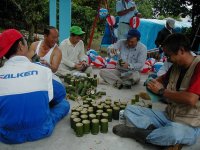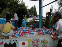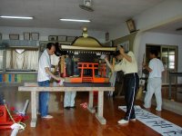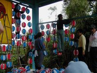 | 飾りのちょうちんを一個一個針金を通して飾ります | |||