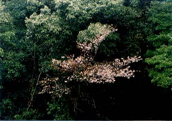 河原に降りたら対岸の崖に山桜が咲いている。この大風と雨で咲いた先から散ってしまうであろうから満開は望めそうもない。それでもこの淡い色は美しいと思う。 ちなみに、私はあまり桜は好きではない。花火と同じでいさぎよいとして日本人には好まれてはいるが、それも程度ものである。確かに花は美しい。ハラハラと散る風情も良い。であるが、葉桜になるやいなや毛虫の大群が住み着く。これはマァ仕方がないか。腹が立つのは、秋風がソヨッとでも吹けばもう葉っぱを落として冬眠している。他の木々はまだ夏のたたずまいを残しているのにである。あまりにも横着ではないか。これが私の桜の嫌いな理由である。 |