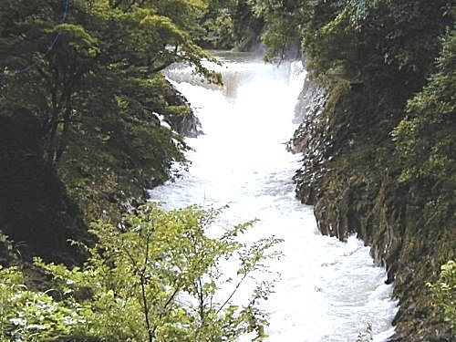 いつもは水のきれいな川もさすがに濁っています。ヤマメはどこにかくれているんだろう。